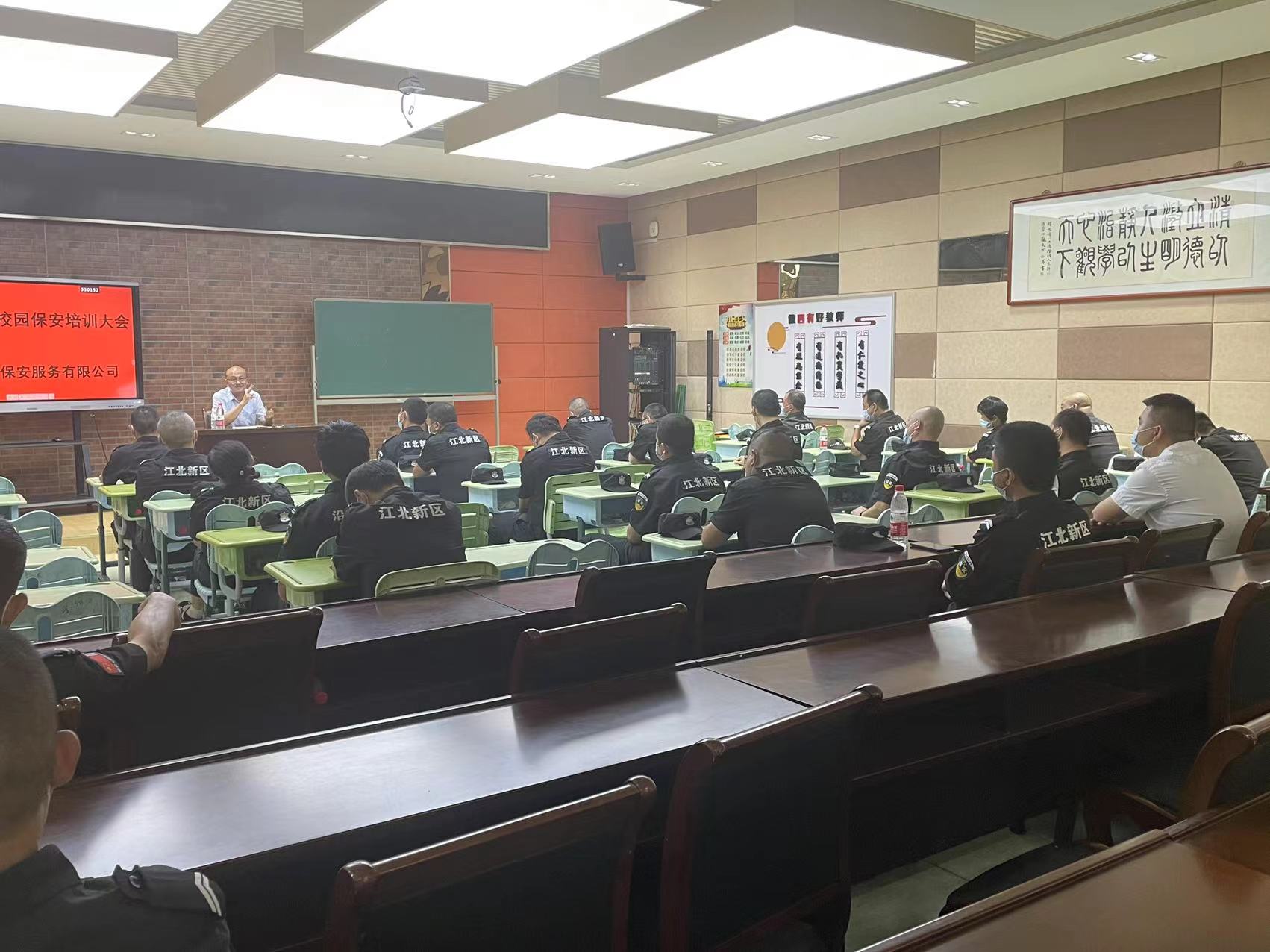為提高學(xué)校保安員的綜合素質(zhì)和履行職責(zé)的實(shí)際能力,進(jìn)一步推進(jìn)學(xué)校保安隊伍建設(shè),提升保安隊伍整體素質(zhì)和服務(wù)水平,促進(jìn)和諧校園、平安校園建設(shè),南京沿江保安服務(wù)有限公司于2022年8月25日舉辦校園保安業(yè)務(wù)培訓(xùn)大會。