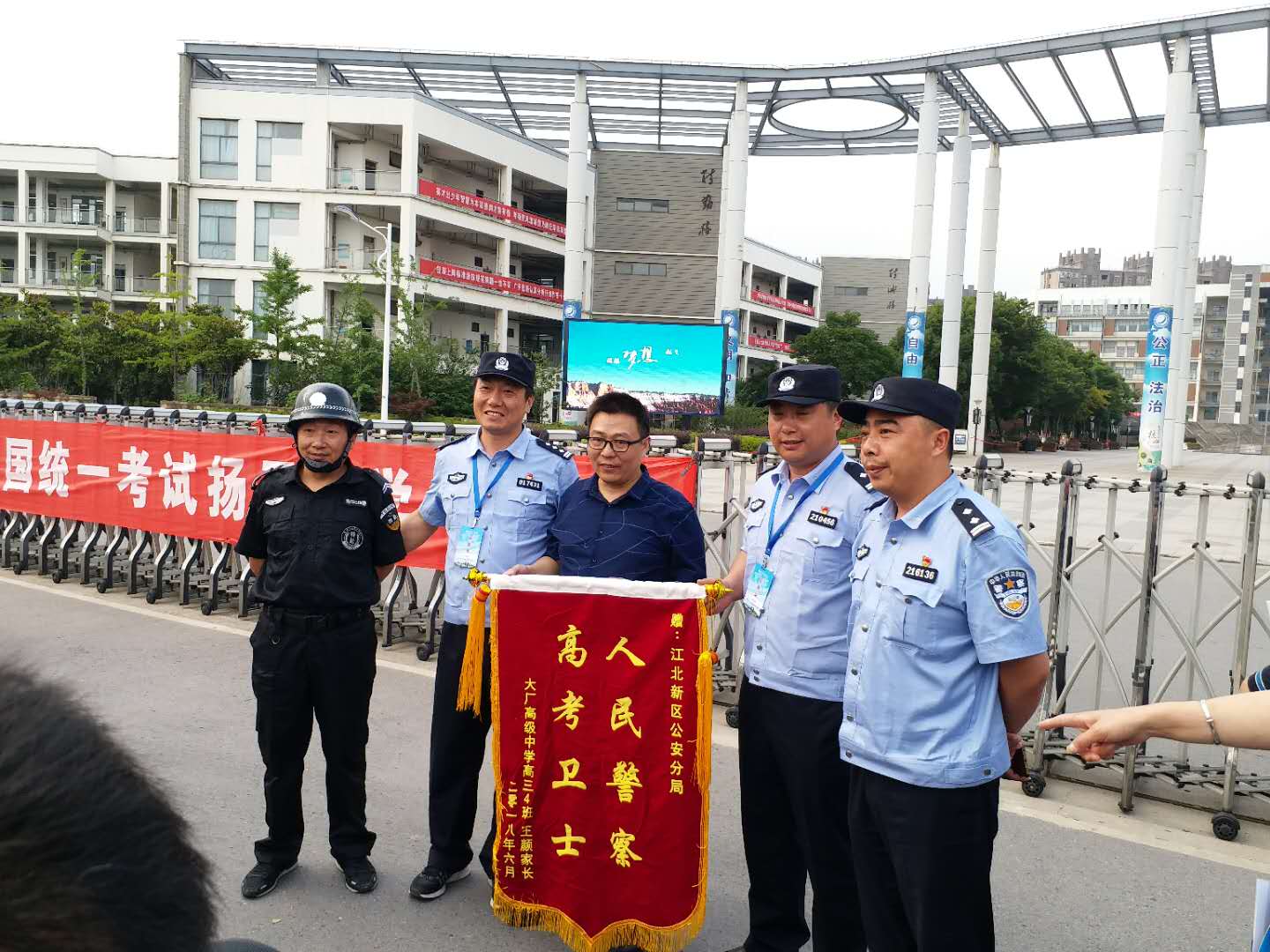 考試結(jié)束后家長特制錦旗一面送到學校,表示了對我們保安人員的感謝!此事雖小但值得我們?nèi)w員工向你們學習!